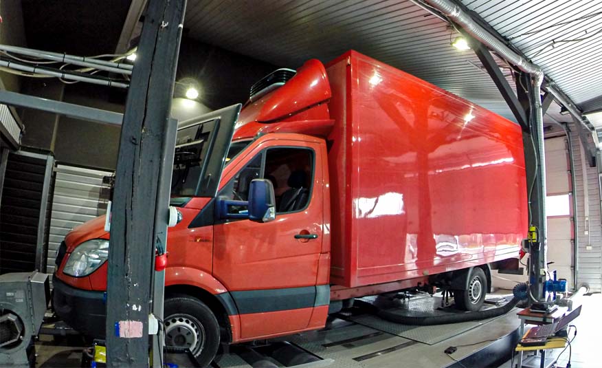 K dispozícii máme plne vybavené technické vozidlo s kompletnou súpravou nástrojov a softvéru, ktoré nám umožňuje vykonávať úpravy nákladných vozidiel na území celého Poľska, Slovenska a Česka Republika.